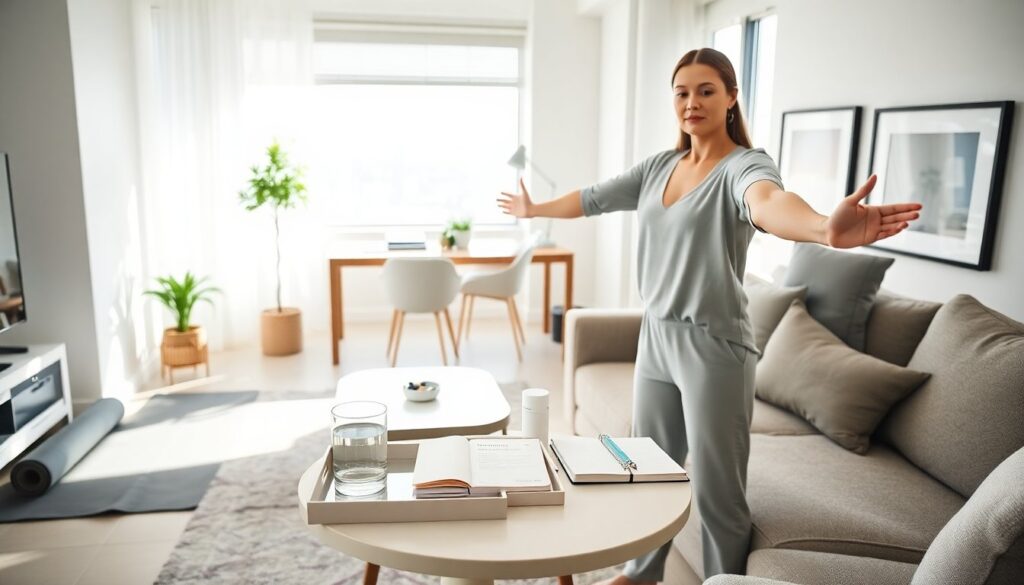 They add a brief mental reset. A three-minute breathing break or a two-minute gratitude list clears stress. People can follow techniques from how to reduce stress quickly at home to choose effective moves. They also check posture and screen distance. Adjusting posture reduces neck strain and improves breathing.